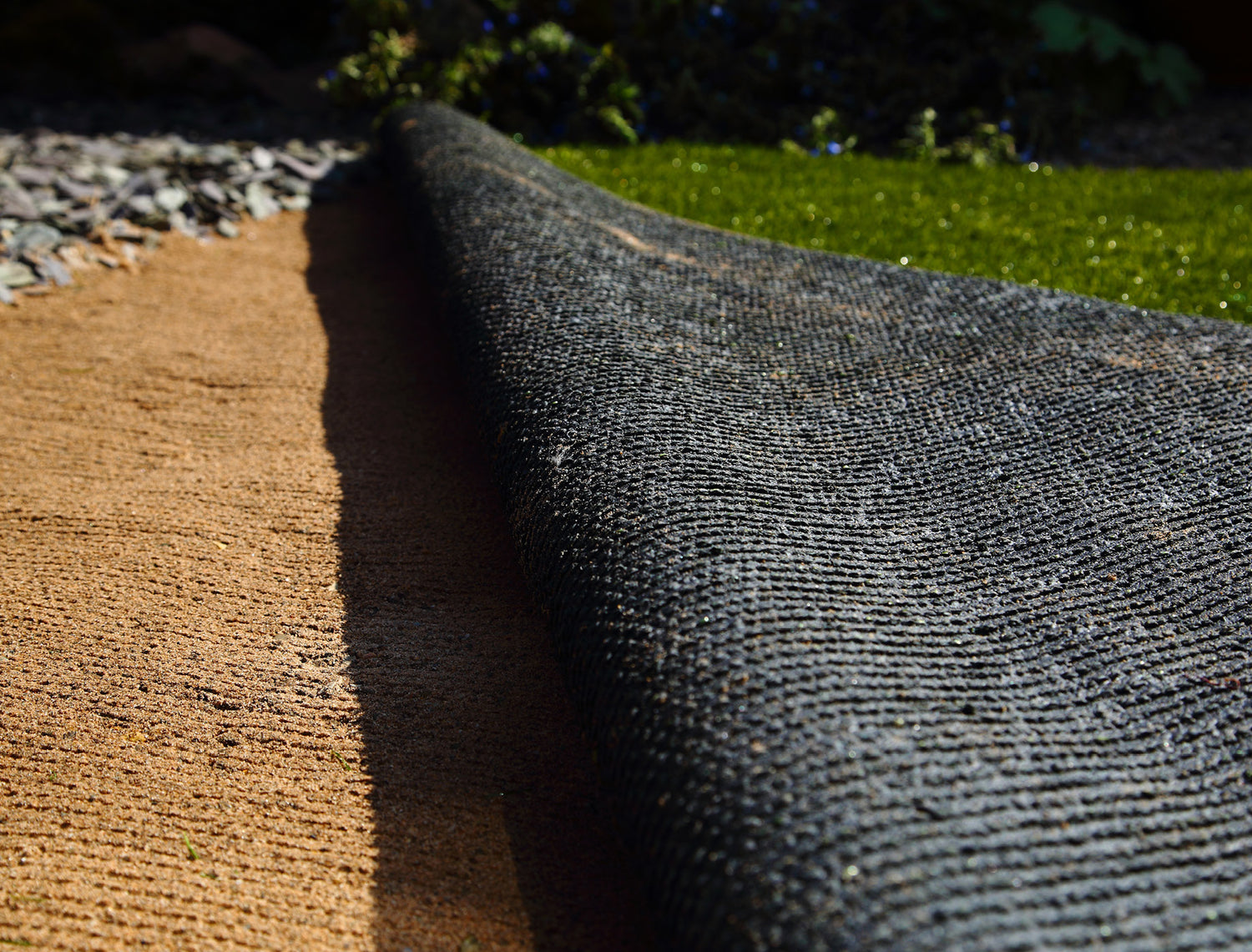 Elimina l’erba naturale e livella il terreno. Il terreno, dopo aver eliminato dislivelli o irregolarità, dovrà risultare più basso almeno di 3 cm rispetto al livello del pavimento e del perimetro. Posa il telo geotex su tutta l’area per evitare la crescita di erbe infestanti, ancora il telo con i chiodi.