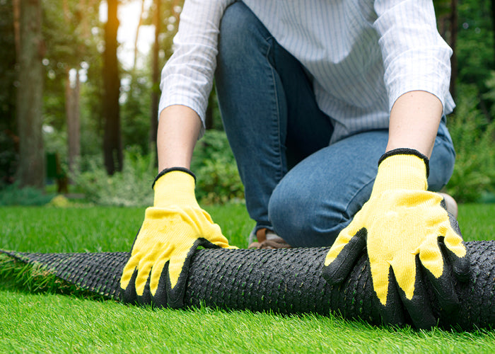 Procedi con l’incollaggio delle giunzioni con l’apposita banda butilica preincollata. Fissa il prato con chiodi di tenuta e picchetti a U, circa ad un metro di distanza l’uno dall’altro, per evitare che le pezze si spostino.